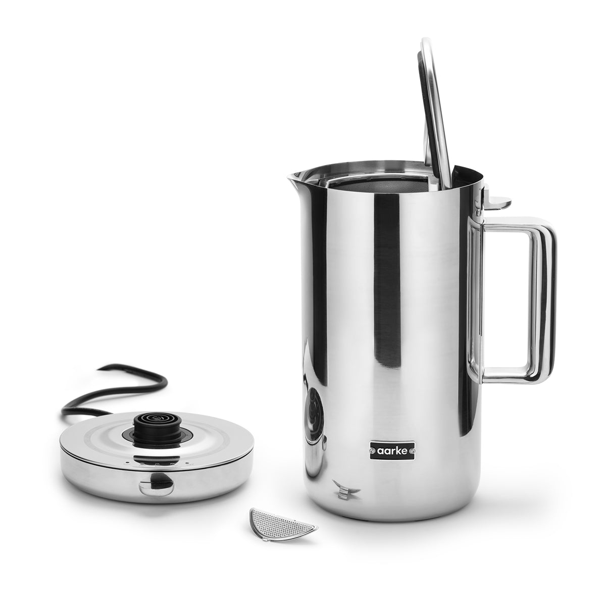The Polished Steel edition is the classic expression of the Aarke Kettle — seamless, mirror-polished stainless steel that looks as good as it performs. Founded in 2013 by industrial designers Carl Ljungh and Jonas Groth, Aarke was built around the idea that everyday appliances deserve the same level of design thinking as luxury objects. The Kettle is the purest expression of that philosophy.