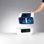 High-performance ultrasonic humidifier with 9L tank, dual hot/cold mist modes, digital display and hygienic cleaning system. Covers rooms up to 80 m².