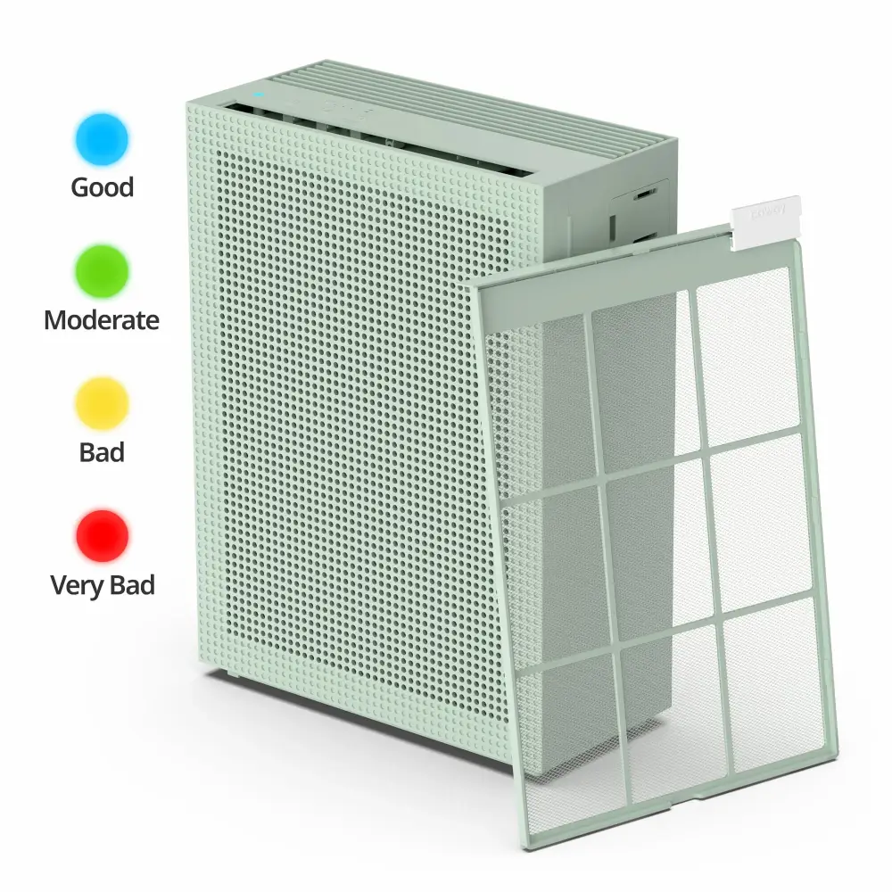 The Coway Airmega 150 is a compact, powerful, and energy-efficient air purifier certified by ECARF and QuietMark. It features a 3-stage HyperCaptive™ filtration system including a pre-filter, deodorization filter, and GreenHEPA filter. This advanced setup captures 99.999% of particles as small as 0.01 µm, including pollen, dust, smoke, and allergens, while also reducing 99% of VOCs and odors. With a CADR of 281 m³/h, it purifies rooms up to 73 m² effectively, and smaller spaces in minutes. The unit includes auto mode, real-time air quality monitoring, a filter replacement indicator, and touch-button control. Running at just 20 dB in standby, it offers clean air all year with filters lasting up to 12 months.