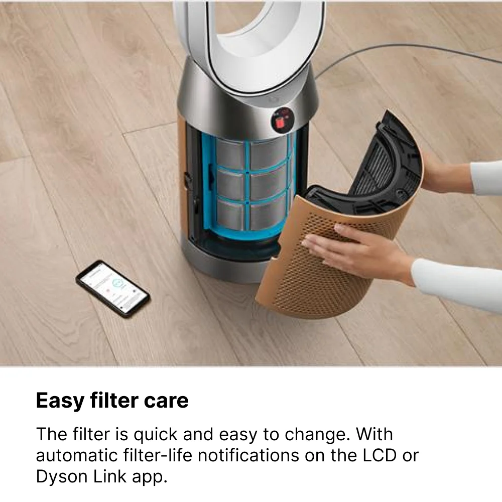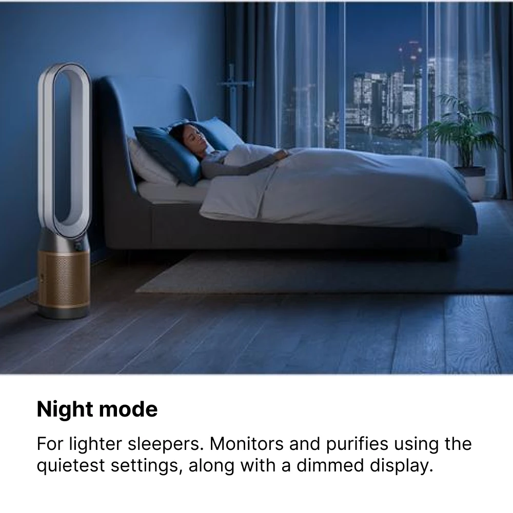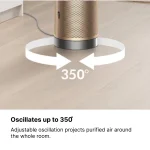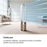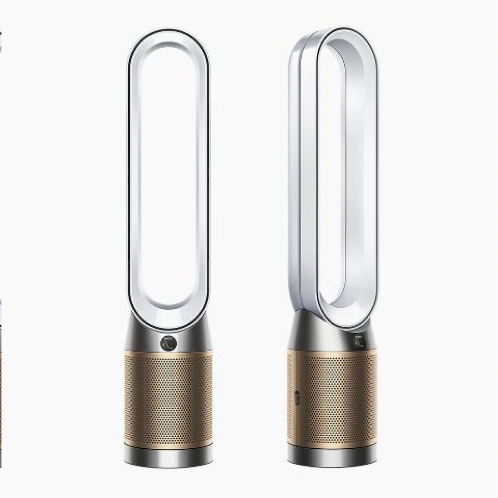 The Dyson TP09 Pro Purifier Cool Formaldehyde is a high-end air purifier and fan combo that not only captures pollutants but also destroys formaldehyde molecules using a catalytic filter. Equipped with a sealed HEPA filtration system and activated carbon, it captures 99.97% of ultrafine particles including allergens, dust, bacteria, and gases. The device delivers purified airflow across the entire room and can be controlled with precision via touch or button interface. Designed in an elegant white/gold finish, it offers energy-efficient performance (Class A+) and operates quietly with a noise level of 61.5 dB. Ideal for year-round air purification with added cooling during warmer months.