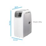 electriQ AirFlex Smart 14000 BTU Portable Air Conditioner.14 000 BTU cooling capacityCooling + Fan + Dehumidifier modesRecommended for rooms up to ~40 m²Wi‑Fi / app controlWindow exhaust kit compatible (easy setup).