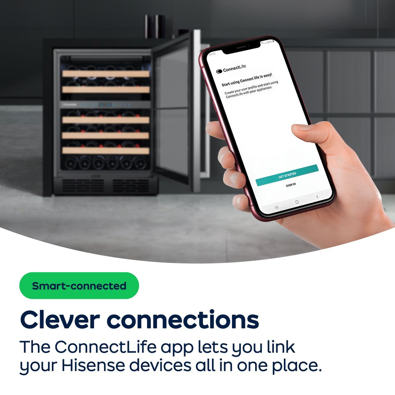 Touch electronic controls let you dial in the perfect temperature anywhere between 5°C and 20°C, and the adjustable-brightness LED interior light lets you showcase your wines just as you like. A built-in activated charcoal filter removes unwanted odours, and the reversible door hinges give you flexible installation options. For even more convenience, the cooler connects to the ConnectLife app, so you can monitor and adjust the temperature remotely from your smartphone.