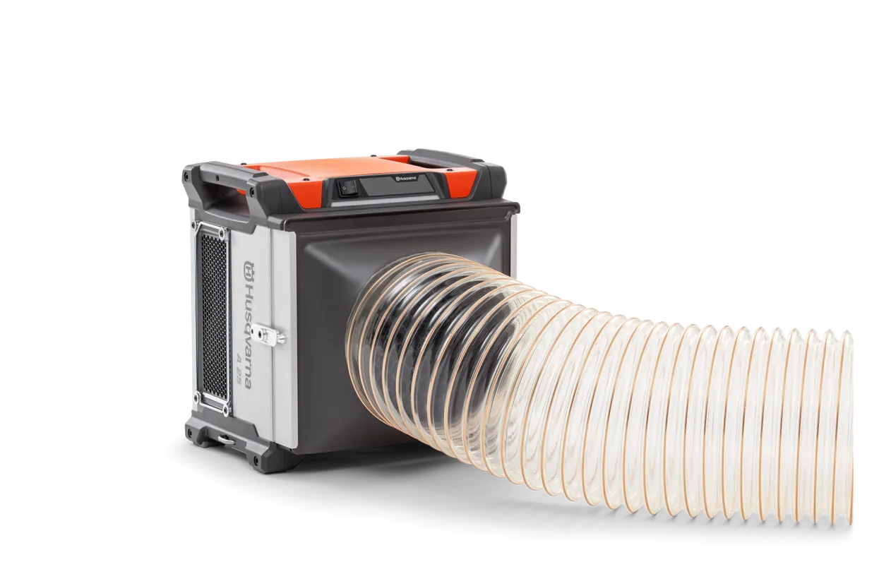 The Husqvarna A 25 Air Scrubber is a new generation of industrial air cleaner / air scrubber developed with a whole new level of intelligence and mobility; and can be used as both an air cleaner and a negative air machine, with two or three-stage filtration that captures various particles commonly produced on a construction site, including silica and wood dust, as well as dust from metal, gypsum and other building materials.