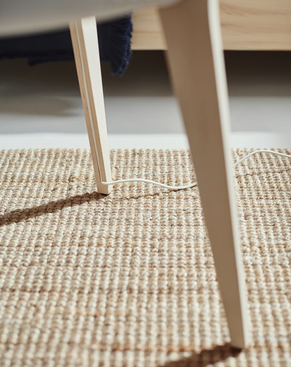 You can hide the cable in one of the table legs and inside the air purifier to avoid cable clutter.
