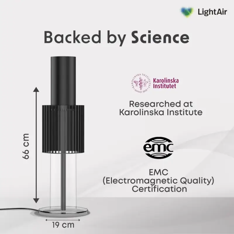 The LightAir IonFlow Signature is a black, filterless air purifier that uses advanced ionization technology to silently clean the air. Designed for spaces up to 60 m², it emits thousands of negative ions per second that attach to airborne particles—such as mold, smoke, fine dust, and viruses—neutralizing them effectively. Instead of traditional filters, a positively charged collector attracts and traps particles, which can be rinsed clean with water. With just 21 dB noise level and 5W power consumption, it’s ideal for homes, bedrooms, or offices seeking low-maintenance, ozone-free purification.
