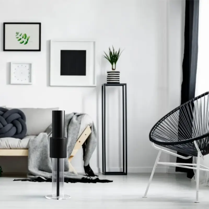 Elegant, silent air purifier with ionization technology and no filters. Effectively removes smoke, dust, allergens, mold, and viruses from up to 60 m².