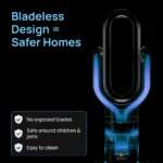 - 100% bladeless — safe around children, pets and delicate surfaces